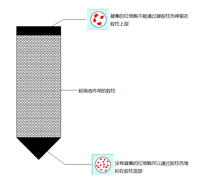 微柱凝膠技術(shù)是液相技術(shù)與固相技術(shù)的巧妙組合,是凝膠過濾技術(shù)、離心技術(shù)、紅細(xì)胞凝集試驗技術(shù)(特異性抗體抗原反應(yīng))的完美結(jié)合。通過對凝膠種類的選擇和凝 膠濃度的調(diào)節(jié)來控制分子篩孔徑大小,使分子篩只允許游離紅細(xì)胞通過,從而達(dá)到分辯凝集紅細(xì)胞和非凝集紅細(xì)胞的目的。